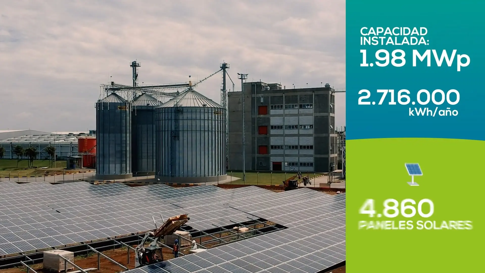 Se realizó una producción audiovisual híbrida que incluyó vuelos de dron sobre el terreno y la planta en operación, tomas internas con cámaras de acción para capturar detalles del montaje y operación, y un timelapse de tres meses construido a partir de una cámara de seguridad que registró el progreso de la obra. La edición integró estos recursos en una narrativa continua, reforzada con corrección de color y montaje rítmico, logrando una pieza que muestra claramente la evolución del proyecto y su impacto, ideal para presentaciones institucionales y comunicación de logros corporativos.